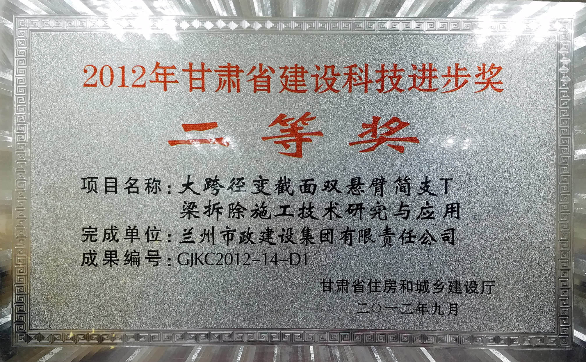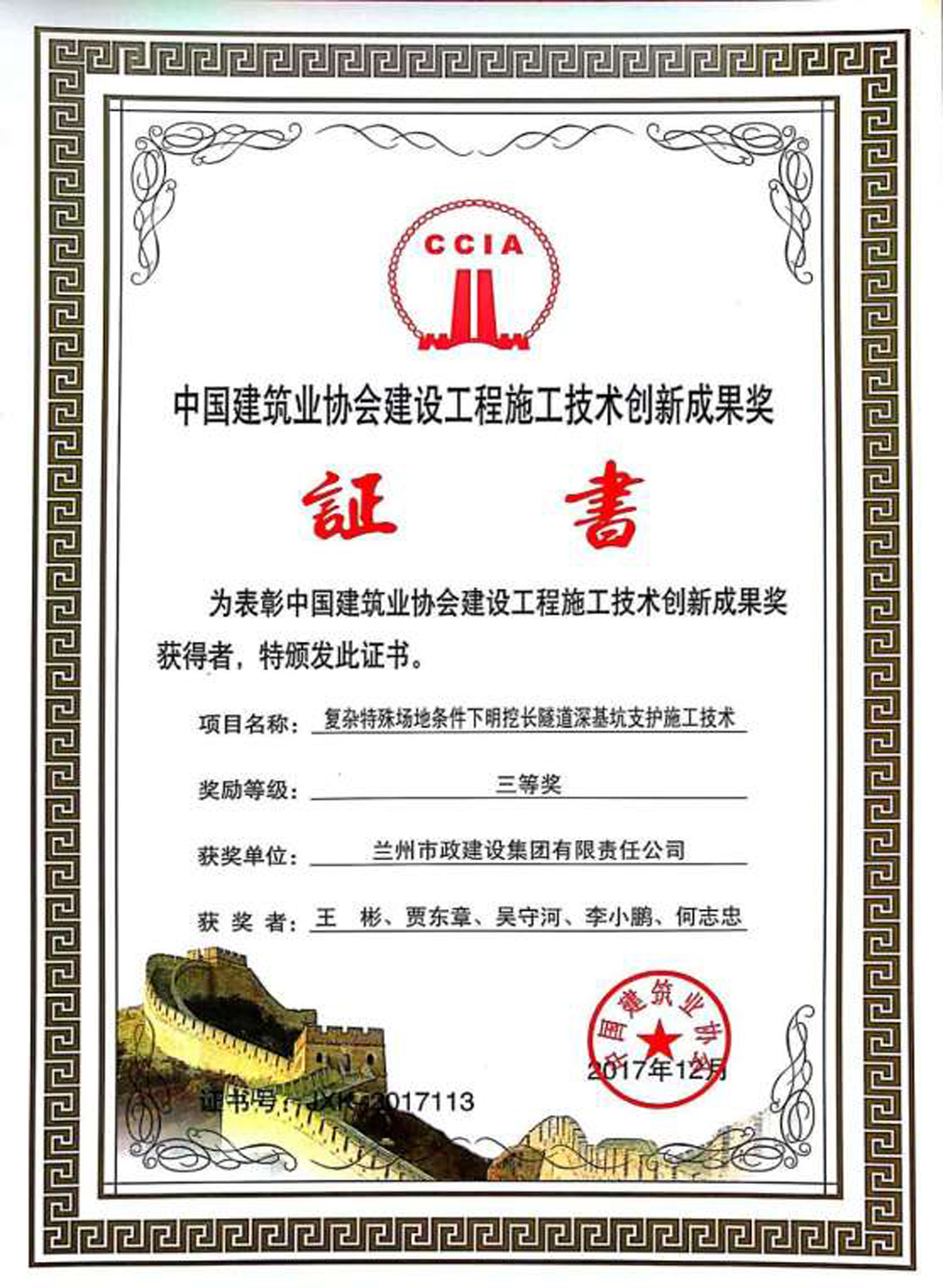 科技進步獎公司堅持實施“科技興司”戰(zhàn)略,產(chǎn)、學(xué)、研結(jié)合,大力開展“四新”技術(shù)及建筑業(yè)“十項”新技術(shù)的應(yīng)用、研發(fā)和推廣,取得了一大批自主研發(fā)成果,公司獲得國家專利8項、國家級工法2項、省級工法20項、省建設(shè)科技進步獎15項、省建設(shè)科技示范工程4項,通過省建設(shè)科技成果鑒定21項,大部分科技成果處于國內(nèi)領(lǐng)先水平,公司曾獲得“全國建筑業(yè)科技進步與技術(shù)創(chuàng)新先進企業(yè)”、“肅省技術(shù)優(yōu)勢企業(yè)”等稱號,公司技術(shù)實力處于西北同行業(yè)前列。