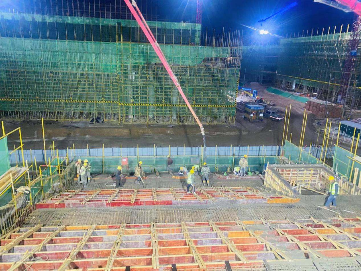 涼州區(qū)職業(yè)中等專(zhuān)業(yè)學(xué)校5號(hào)實(shí)訓(xùn)樓建設(shè)項(xiàng)目總面積9059.2平方米,計(jì)劃周期12個(gè)月,2024年7月交付使用。項(xiàng)目建設(shè)初期,由于施工場(chǎng)地內(nèi)高壓電塔遷改進(jìn)程緩慢,導(dǎo)致新建項(xiàng)目開(kāi)工較晚。為確保5號(hào)實(shí)訓(xùn)樓建設(shè)項(xiàng)目按期完工,項(xiàng)目部提前籌劃、科學(xué)安排,倒排工期,現(xiàn)場(chǎng)管理人員及施工人員加班加點(diǎn),趕進(jìn)度,把前期耽誤的時(shí)間搶回來(lái)。截至目前,5號(hào)實(shí)訓(xùn)樓建設(shè)項(xiàng)目已在一個(gè)月內(nèi)完成基礎(chǔ)與主體混凝土澆筑2800m3,構(gòu)造底板及剪力墻SBS防水卷材2500m2,使用鋼筋原材580噸,從構(gòu)造底板到主體三層結(jié)構(gòu)的施工任務(wù),為建設(shè)項(xiàng)目按期交付打下了堅(jiān)實(shí)基礎(chǔ)。