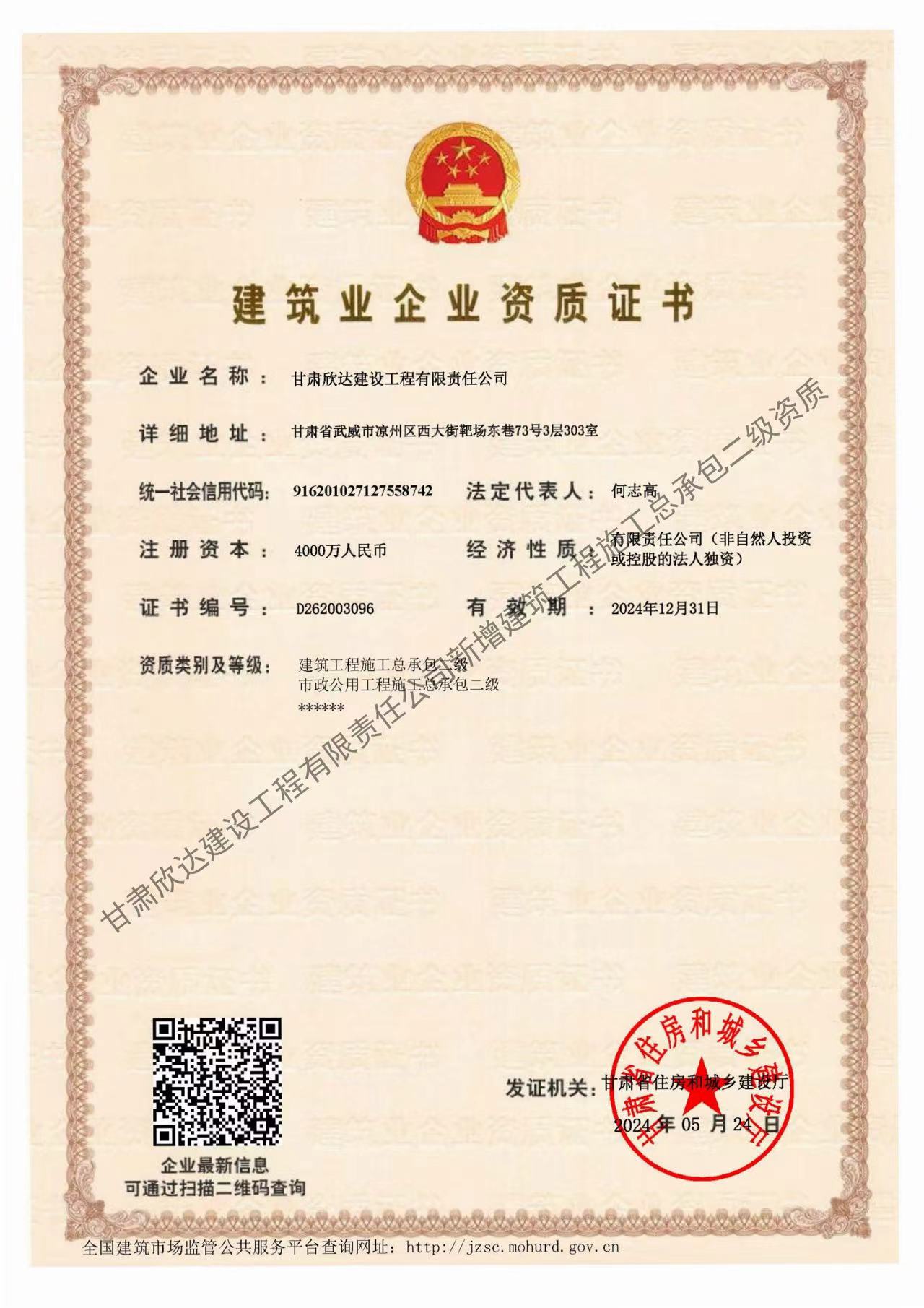 5月28日,經(jīng)甘肅省住房和城鄉(xiāng)建設(shè)廳核準(zhǔn),蘭州市政建設(shè)集團(tuán)子公司甘肅欣達(dá)建設(shè)工程有限責(zé)任公司成功新增“建筑工程施工總承包二級”資質(zhì)。